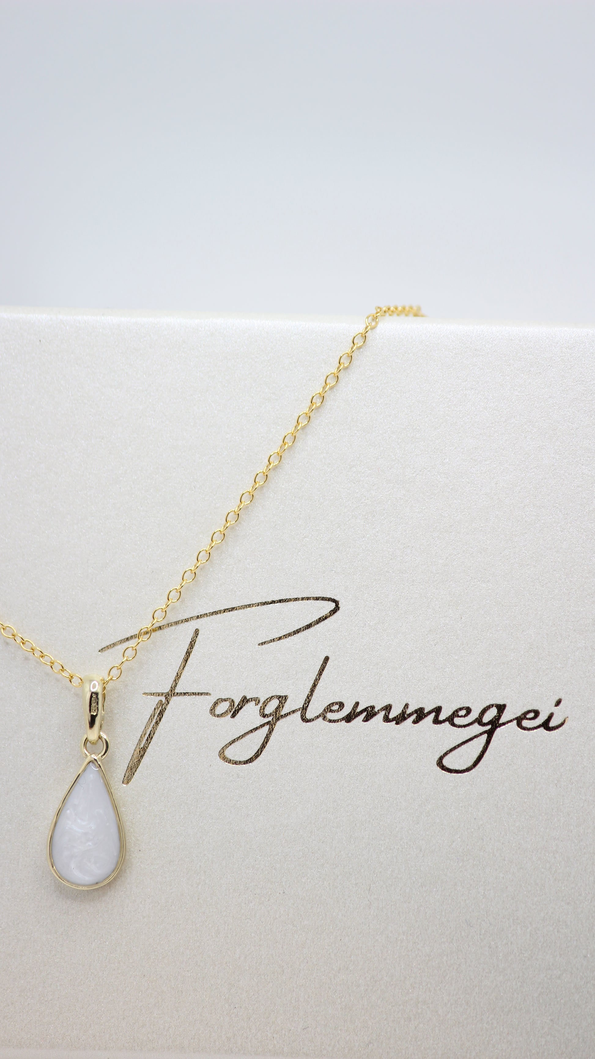 Ett veldig enkelt og samtidig vakkert smykke i form av en dråpe. Perfekt som morsmelksmykke eller annen type minnesmykke.