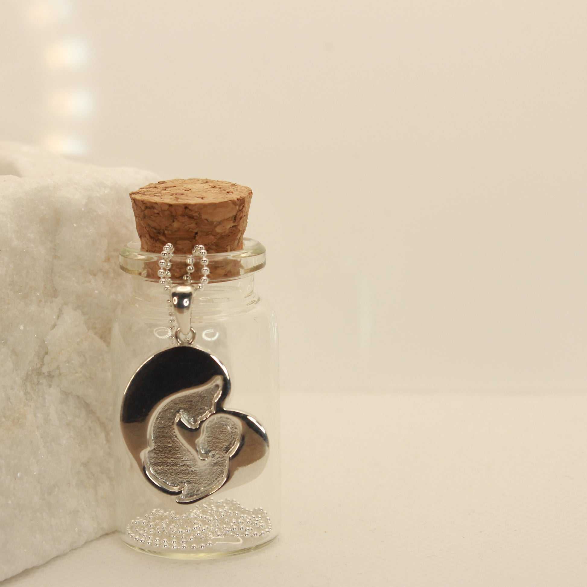 Ett nydelig anheng i sølv som vil være perfekt med innhold som morsmelk. Ett vakkert symbol på båndet mellom mor og barn