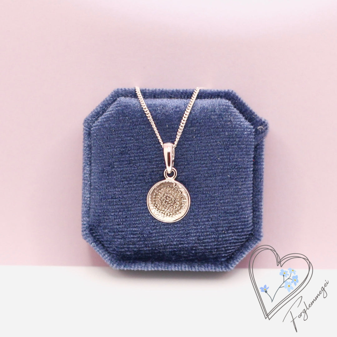 Ett fint rundt smykke som passer veldig fint både som morsmelksmykke og som annet type minnesmykke.
